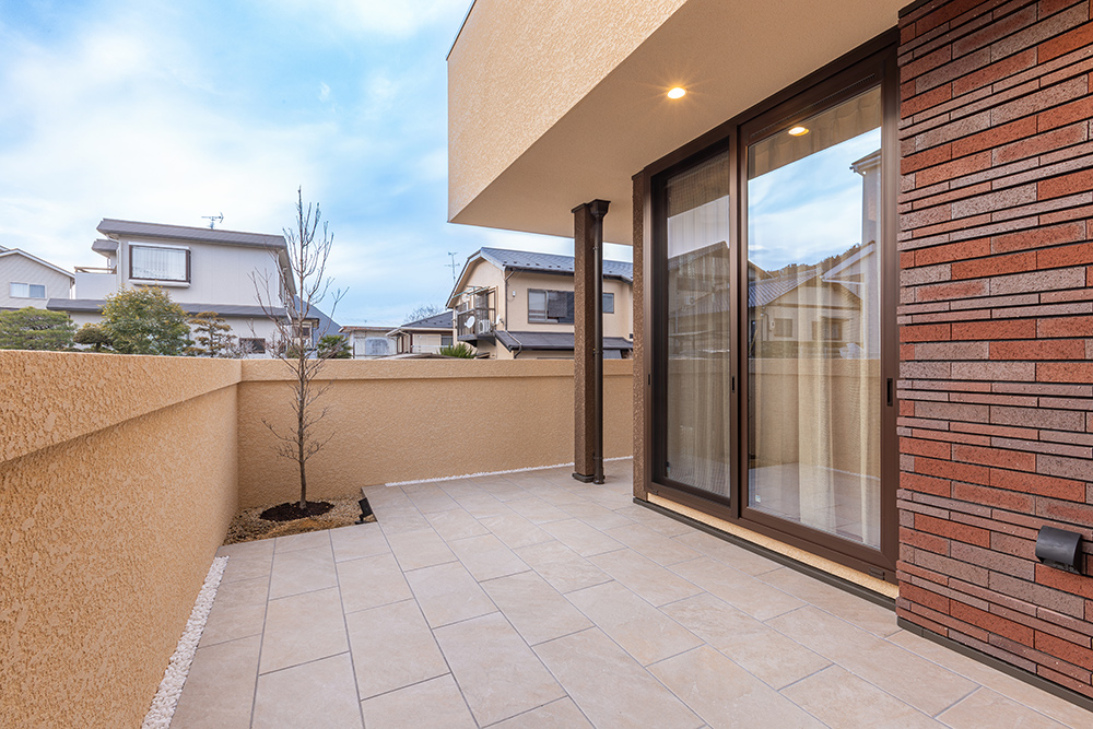 広々としたタイルデッキでは家族や友人とバーベキューなども楽しめる、もうひとつのリビングのような場所になりました。